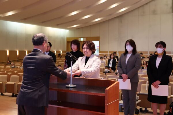配分式では、配分委員長から配分(助成)決定までの過程が報告されたあと、助成決定通知となる「配分書」を会長から伝達いたしました。